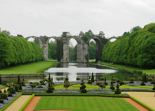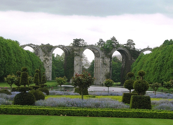Le parc: Un rayon de soleil nous guide vers le parc conçu par André Le Nôtre dès 1676. Il choisit pour Maintenon le creusement d’un canal bordé de deux allées plantées sur ses rives passant sous l’aqueduc, un parterre entouré d’eau côté droit et un parterre triangulaire composé de broderie. Les jardins connaissent ensuite de nombreuses modifications avant d’être recomposés en 2013 par le Conseil départemental pour commémorer le 400ème anniversaire de la naissance de Le Nôtre. En fond de scène, les ruines de l’aqueduc se dressent et évoquent les célèbres paysages du peintre Hubert Robert. Projet ambitieux de Louis XIV pour amener l’eau de l’Eure à Versailles, cet édifice dessiné par l’architecte Blondel devait s’élever à 73 mètres sur le modèle du Pont du Gard ! Mais, les guerres de la ligue d’Augsbourg vident les caisses de l’état et les travaux sont abandonnés. Madame de Maintenon hérite des ruines mais aussi d’un titre de marquise, censé la dédommager des constructions qui ont abîmé le parc. |