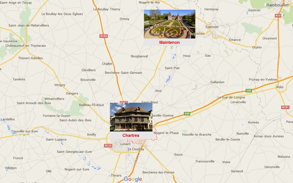 Un peu d'histoire: Arrivés au château de Maintenon, nous commençons par une leçon d’histoire et d’architecture. Du XIIIème au XVIème siècle, le domaine appartient à la famille des Amaury, on peut aujourd’hui admirer la tour carrée en grès construite par eux ainsi que les trois tours en brique reliées entre elles par des courtines crénelées. Par manque d’argent, la famille Amaury doit céder le château à Jean Cottereau, financier et intendant des finances du roi Louis XII. Il décide de faire de cette forteresse un peu rustique une demeure de plaisance. Il l’agrandit en faisant largement usage du mariage entre la pierre et la brique. |